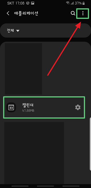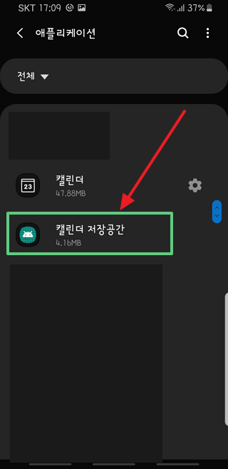 설정, 애플리케이션 목록에는 '캘린더' 만 보일 겁니다.
