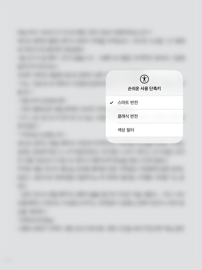 손쉬운 사용 단축키에 '스마트 반전' 을 설정하면 됩니다.