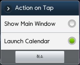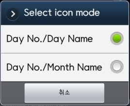 Icon Mode 는 알림창에 표시되는 내용을 '일자/요일' 로 할 것인지, '일자/월' 로 할 것인지를 선택하게 합니다.