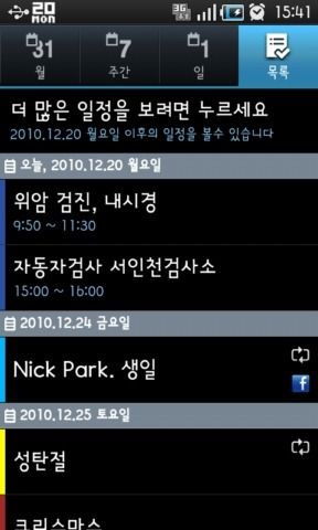 '일정' 어플의 '목록' 탭이 열립니다. 이 부분도 설정에 따라 달라집니다.