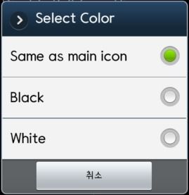 Icon Color 는 메인에 표시되는 대로 표시되거나, 검정색과 흰색을 선택할 수 있습니다. 메인의 토요일/일요일 옵션이 적용되게 하려면, 'Same as main icon' 을 선택합니다.