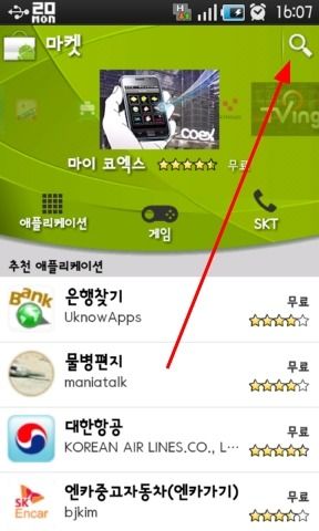 자, 그러면 설치를 해 볼까요..? 안드로이드 마켓을 엽니다..