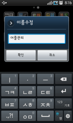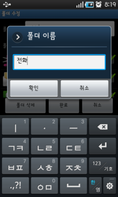 폴더 이름을 터치하면 아래 오른쪽 이미지 처럼 폴더 이름을 변경할 수 있습니다.