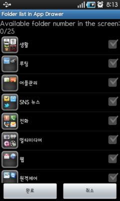 안드로이드에서 관리하는 일반 폴더를 만들고 일반 폴더에 어플을 드래그 앤 드랍할 수도 있지만,