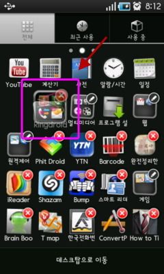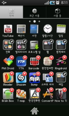 어플 아이콘 오른쪽 위에는 'x' 로 어플 삭제 기능이 작동합니다.
