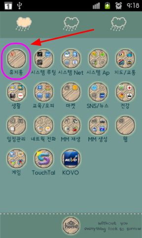 고 런처에서 어플(앱)들을 폴더로 관리할 수 있지요.